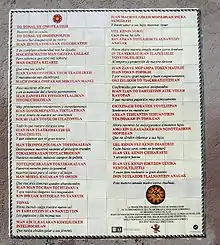 Cuauhtemoc's date of birth is unknown, as he does not enter the historical record until he became emperor.[2] He was the eldest legitimate son of Emperor Ahuitzotl[3] and may well have attended the last New Fire ceremony, marking the beginning of a new 52-year cycle in the Aztec calendar.[4] According to several sources his mother, Tiyacapantzin, was a Tlatelolcan princess.[5] Like the rest of Cuauhtemoc's early biography, that is inferred from knowledge of his age, and the likely events and life path of someone of his rank.[6] Following education in the calmecac, the school for elite boys, and then his military service, he was named ruler of Tlatelolco, with the title cuauhtlatoani ("eagle ruler")[7] in 1515.[8] To have reached this position of rulership, Cuauhtemoc had to be a male of high birth and a warrior who had captured enemies for sacrifice.[9] Cuauhtemoc married the Aztec princess who later became known as Isabel Moctezuma.[10]