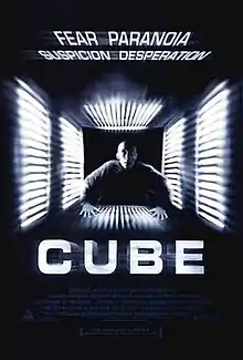 Cube is a 1997 Canadian science fiction horror film directed and co-written by Vincenzo Natali.[8] A product of the Canadian Film Centre's First Feature Project,[9] Nicole de Boer, Nicky Guadagni, David Hewlett, Andrew Miller, Julian Richings, Wayne Robson, and Maurice Dean Wint star as individuals trapped in a bizarre and deadly labyrinth of cube-shaped rooms.