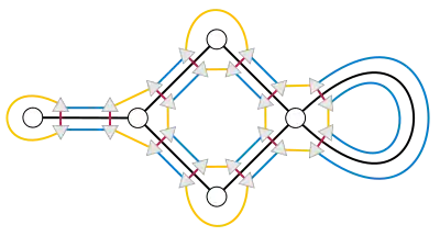 An arbitrary graph embedding on a two-dimensional surface may be represented as a cubic graph structure known as a graph-encoded map. In this structure, each vertex of a cubic graph represents a flag of the embedding, a mutually incident triple of a vertex, edge, and face of the surface. The three neighbors of each flag are the three flags that may be obtained from it by changing one of the members of this mutually incident triple and leaving the other two members unchanged.[6]