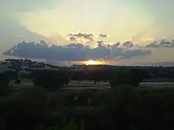 To the south of this mountain range, the terrain descends to the Monte de El Pardo, the third geomorphological unit through which the park runs, covering approximately 16 000 hectares.[8] The granitic materials give way to detrital and sandy elements, the result of the erosion of the Guadarrama and Hoyo mountain ranges, which form an undulating landscape of gentle hills, with an average altitude of 600 m. The Monte de El Pardo sits on an immature soil, easily eroded. Similar characteristics are found in Monte de Viñuelas, eastern appendix of El Pardo.
