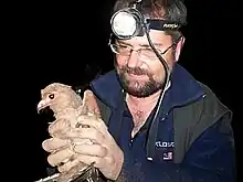 Alex Chionetti holding one of the birds that gives the Cueva de los Tayos its name in Spanish.