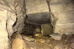 As a result of the claims published in von Däniken’s book, an investigation of Cueva de los Tayos was organized by Stan Hall of Scotland, in 1976. One of the largest and most expensive cave explorations ever undertaken, the expedition involved over a hundred people, including experts in a variety of fields, British and Ecuadorian military personnel, a film crew, and former American astronaut Neil Armstrong.[4][5] The team also included eight experienced British cavers who thoroughly explored the cave and conducted an accurate survey to produce a detailed map of it. This expedition was financed by Government of Ecuador and United Kingdom.[1] There was no evidence of Von Däniken’s more exotic claims, although some physical features of the cave did approximate his descriptions and some items of zoological, botanical, and archaeological interest were found. The team found passageways cut neatly and polished deep inside the cave and also burial sites dating back to 1500 B.C.[3] The lead researcher met with Moricz's indigenous source, who claimed that they had investigated the wrong cave, and that the real cave was secret.[6] Deep inside the cave, there are square shaped rock cuttings and rock structures resembling elongated doors and that portion is called Moricz portal. [1]