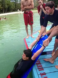 CCRRA includes a 1.5 acres (0.0061 km2) swim lagoon and formerly included a fishing lake that resulted from damming Cull Creek.[lower-alpha 1] The swim area has a bathhouse, lawns, sandy beaches, and much shallow water for kids.[2] EBRPD reports that "The [recreation area's] lagoon won the 1966 Governor's Design Award for Exceptional Distinction for Recreational Development in the category of landscape."[1][3] The recreation area is open for swimming seasonally. The swim area is fenced and has a lifeguard on duty when the area is open. No dogs are allowed inside this area.