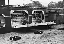 In the following weeks, the Germans noticed intense patrol activity in front of the Siegfried Line as the French collected soil samples so that technicians could determine the most suitable places for the Cultivators to advance.[19] However, the production of Cultivator almost immediately faced a problem as the Air Ministry reserved for RAF use all the Rolls-Royce Merlin engines being produced. Ruston-Bucyrus had intended to use the Merlin, but now had to change tack. They called in Sir Harry Ricardo, who suggested using a pair of 600 hp lightweight diesel engines built by Davey, Paxman and Co.[19][21][22] The change meant a great deal of redesign work, but the new arrangement had some advantages. Now one engine would be used for the cutter and one for moving the machine, which simplified some aspects of the design, and diesel fuel was safer than the petrol required by the Merlin engine.[23]