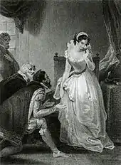 From martyrology and poetry, Jane finally made it on to the stage in the early Jacobean period in Sir Thomas Wyatt by John Webster and Thomas Dekker, where she takes on the role of a tragic lover. The play was probably largely based on an earlier lost play called Lady Jane. This theme was taken up later in the century by John Banks, a Restoration playwright, in his Innocent Usurper: or, the Death of Lady Jane Grey. Here Jane is only persuaded to accept the crown after her husband, Lord Guilford Dudley, threatens to commit suicide if she does not. First printed after the Glorious Revolution, there is also a strong anti-Roman Catholic dimension to Banks's play, which presumably appealed to the audiences of the day.