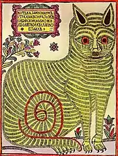 During the Middle Ages, many of Artemis' associations with cats were grafted onto the Virgin Mary.[18] Cats are often shown in icons of Annunciation and of the Holy Family[18] and, according to Italian folklore, on the same night that Mary gave birth to Jesus, a cat in Bethlehem gave birth to a kitten.[18]