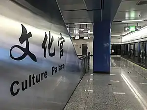 Culture Palace (Chinese: 文化宫) is a transfer station on Line 4 and Line 7 of the Chengdu Metro in China. It was opened on 26 December 2015.[1][2]