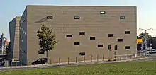 The nearby UFA-Kristallpalast cinema is a recent design by the firm Coop Himmelb(l)au. It is one of the largest deconstructivist buildings in Germany. Another deconstructivist project been planned for Dresden by Daniel Libeskind: the Military History Museum in the classicist Arsenal building which is currently under reconstruction. Libeskind has designed an arrow breaking through the building in the direction of the inner city, symbolising the flight formations during the bombardment of Dresden 1945— appropriate to the context of the military museum that has existed in that building since 1918. The transparent new facade is in foreground of the solid old facade and creates a contrast that emblematises open and democratic society and the new role of its armed forces in contrast to the historic past.[4]