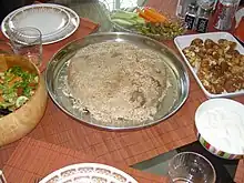 Palestine's history of rule by many different empires is reflected in Palestinian cuisine, which has benefited from various cultural contributions and exchanges. Generally speaking, modern Palestinian dishes have been influenced by the rule of three major Islamic groups: the Arabs, the Persian-influenced Arabs, and the Turks.[26] The original Bedouin Arabs in Syria and Palestine had simple culinary traditions primarily based on the use of rice, lamb and yogurt, as well as dates.[27]