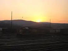 The Cumberland rail yard complex originally included a large classification yard and an engine shop.[3] The B&O opened its Westward Transportation Yard in Cumberland in 1960. The yard is 3.5 miles (5.6 km) long and occupies 95 acres (0.38 km2). It includes an 8-track receiving yard, a 33-track hump classification yard with automatic retarders and switching, car inspection and repair facilities, and other support buildings. CSX converted the yard to remote operation in 2004, and classified 1,000 to 1,400 cars per day in 2010.[4] In 2017 CSX converted the yard to flat switching and closed the hump operations.[5]