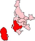 The Cunninghame North constituency covers a diverse mix of areas located towards the northern half of the North Ayrshire Council area, rising from the working class towns of Ardrossan and Saltcoats in the south-west up to the coastal towns of Fairlie, Skelmorlie, Largs and West Kilbride in the north-west. West of here, across the Firth of Clyde, sits the Island communities of Arran and Cumbrae, which are covered by the constituency. Along the east of the constituency is the more working-class Garnock Valley which comprises Kilbirnie, Beith and Dalry, towns which once specialised in the production of steel and textiles before the industries collapse across the 20th Century. The constituency is mostly working-class in nature, although this is contrasted by the affluence enjoyed in the more rural parts of the constituency and in areas such as Arran, Fairlie, Skelmorlie, West Kilbride and patches of Largs.[5] The constituency returned a high unemployment rate of 6.4% at the 2011 census compared to the Scottish average of 4.8%.[6]