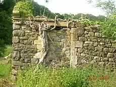 A small doocot or dovecot was above the entrance arch until its removal by the current owner. This was a feature of many estates, as the right to build a doocot was originally strictly limited to the major landowners, and only later were small freeholders permitted to build them; at a more recent date tenants could sometimes gain permission from their landlord to build doocots for the meat or to add a picturesque feature to their properties.[20]