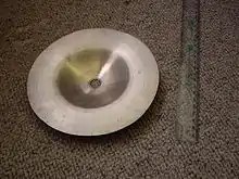 A bell cymbal, bell splash cymbal, or ice bell is a small, very thick cymbal with little if any taper, used as an effects cymbal in a drum kit. The sound produced when striking the bell cymbal with a drumstick is a distinctive high-pitched ping sound with a long sustain. Some manufacturers list bell cymbals as a type of splash cymbal, others as a distinct type.