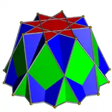 The hypercupolae or polyhedral cupolae are a family of convex nonuniform polychora (here four-dimensional figures), analogous to the cupolas. Each one's bases are a Platonic solid and its expansion.[3]
