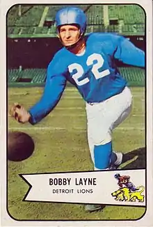 Robert Lawrence Layne (December 19, 1926 – December 1, 1986) was an American professional football player who was a quarterback for 15 seasons in the National Football League (NFL). He played for the Chicago Bears in 1948, the New York Bulldogs in 1949, the Detroit Lions from 1950–1958, and the Pittsburgh Steelers from 1958–1962.[1]