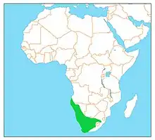 Endemic to Africa, Burchell's courser prefers the warm and dry areas of Southern Africa.[2] Specifically, it is found in most of South Africa and Namibia, and in parts of Angola (Southwest) and Botswana[11] (Kalahari Basin).[5][12] Its distribution range occasionally coincides with that of the Temminck's Courser.[7]