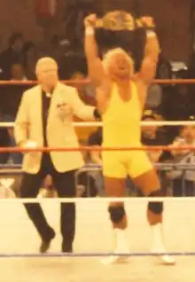 In May 1990, Perfect participated in a tournament for the Intercontinental Heavyweight Championship after previous champion Ultimate Warrior vacated the title upon winning the WWF Championship at WrestleMania VI.[30] Hennig was booked to win the tournament for the vacant title by defeating Jimmy Snuka in the quarter-finals on May 5 episode of Superstars and two-time Intercontinental Heavyweight Champion Tito Santana in the finals on May 19 episode of Superstars.[30][31][32] After his title win, Perfect enlisted Bobby Heenan as his "perfect" manager[26] and made a successful title defense against Santana on July 28 Saturday Night's Main Event XXVII.[33] Hennig was scheduled to defend the title against Brutus Beefcake at SummerSlam, stemming from his loss to Beefcake at WrestleMania but Beefcake suffered an injury and The Texas Tornado substituted for Beefcake and challenged Hennig to a title match for SummerSlam on August 11 episode of Superstars, which Perfect accepted on the following week's Superstars.[26] Perfect dropped the championship to Texas Tornado at SummerSlam.[16][34][30] Hennig was chosen to lead Demolition as "The Perfect Team" against The Warriors (Ultimate Warrior, Texas Tornado and Legion of Doom) in a four-on-four elimination tag team match at the Survivor Series pay-per-view, where Hennig's team lost.[35] He unsuccessfully challenged Texas Tornado in a rematch for the Intercontinental Championship on November 24 MSG Network special, before regaining the title by defeating Texas Tornado on December 15 episode of Superstars, with help from Ted DiBiase.[16][26] Perfect defended the title against Texas Tornado in a rematch on February 2, 1991, episode of Superstars, where he retained the title by losing via countout.[36]
