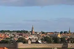 A curtain wall is a defensive wall between two fortified towers or bastions of a castle, fortress,[1] or town.[2]