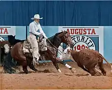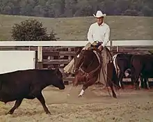 ![]() A cutting horse working a cow | |