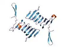 In molecular biology, the cyclase-associated protein family (CAP) is a family of highly conserved actin-binding proteins present in a wide range of organisms including yeast, flies, plants, and mammals. CAPs are multifunctional proteins that contain several structural domains. CAP is involved in species-specific signalling pathways.[2][3][4][5] In Drosophila, CAP functions in Hedgehog-mediated eye development and in establishing oocyte polarity. In Dictyostelium discoideum (social amoeba), CAP is involved in microfilament reorganisation near the plasma membrane in a PIP2-regulated manner and is required to perpetuate the cAMP relay signal to organise fruitbody formation. In plants, CAP is involved in plant signalling pathways required for co-ordinated organ expansion. In yeast, CAP is involved in adenylate cyclase activation, as well as in vesicle trafficking and endocytosis. In both yeast and mammals, CAPs appear to be involved in recycling G-actin monomers from ADF/cofilins for subsequent rounds of filament assembly.[6][7] In mammals, there are two different CAPs (CAP1 and CAP2) that share 64% amino acid identity.