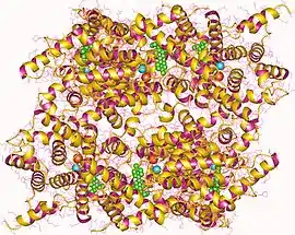 3′,5′-cyclic-nucleotide phosphodiesterases in rod cells are oligomeric, made up of two heavy catalytic subunits, α (90 kDa) and β (85 kDa,) and two lighter inhibitory γ subunits (11 kDa each).[3][4]