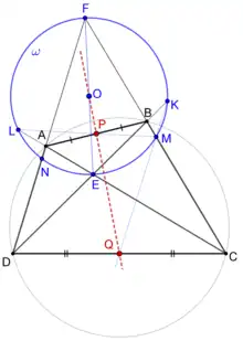 (2) ABCD is a cyclic quadrilateral if and only if points P and Q are the midpoints of sides AB and CD.[2]