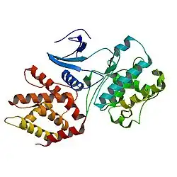 The molecule belongs to the cyclin-dependent kinase family. Kinases are enzymes that catalyze reactions of phosphorylation. This process allows the substrate to gain a phosphate group donated by an organic compound known as ATP. Phosphorylations are of vital importance during glycolysis, therefore, making kinases an essential part of the cell due to their role in the metabolism, cell signaling, and many other processes.