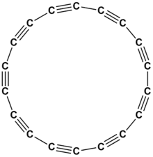 Cyclo[18]carbon is the smallest cyclo[n]carbon predicted to be thermodynamically stable, with a computed strain energy of 72 kilocalories per mole.[1] Above 122 K, it explosively decomposes to amorphous graphite.[2]