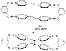 Supramolecular effects can influence these cycloadditions. The cycloaddition of trans-1,2-bis(4-pyridyl)ethene is directed by resorcinol in the solid-state in 100% yield.[5]