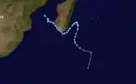An area of convection developed west of Diego Garcia on January 16, prompting the MFR to classify it as Tropical Disturbance 8. A day later, the agency briefly discontinued advisories, only to resume them on January 19 as the disturbance passed north of Madagascar. That day, the JTWC classified the system as Tropical Cyclone 12S. On January 20, the MFR upgraded the system to Tropical Storm Ernest to the east of the Comoros. The storm quickly intensified, and within 12 hours of being named, the MFR upgraded Ernest to tropical cyclone status. The cyclone turned to the south through the Mozambique Channel, attaining peak winds of 165 km/h (105 mph) on January 22, according to the MFR. The JTWC estimated peak 1 minute winds of 185 km/h (115 mph). On the next day, Ernest turned southeast and made landfall in extreme southern Madagascar, near Itampolo. It quickly emerged over open waters and weakened. On January 24, the MFR reclassified Ernest as an extratropical cyclone, tracking it for one more day.[3][4][2][13]
