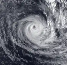 The Intertropical Convergence Zone (ITCZ) became active toward the end of November, spawning a low-pressure area on November 23 about 400 km (250 mi) east of Diego Garcia. This system quickly organized into a tropical disturbance, aided by favorable conditions.[1] On November 24, the JTWC began classifying it as Tropical Cyclone 02S.[3] The next day, the system intensified into Tropical Storm Albertine while moving southwestward, steered by a ridge to the southeast. Late on November 25, an eye developed in the center of the convection, and Albertine intensified to tropical cyclone status the next day. The eye gradually became better organized, attaining a diameter of 90 km (55 mi) on November 28 as Albertine became an intense tropical cyclone.[1] At that time, the MFR estimated peak 10–minute winds of 175 km/h (110 mph),[4] with gusts to 250 km/h (160 mph).[1] In contrast, the JTWC estimated 1–minute winds of 215 km/h (135 mph).[4] After moving over an area of cool water temperatures, Albertine quickly weakened and lost its well-defined eye. On November 30, the center passed about 110 km (68 mi) northwest of Rodrigues after weakening to severe tropical storm status. After weakening gradually, the storm began deteriorating faster due to increasing wind shear. A polar low steered Albertine southeastward until absorbing the system on December 3.[1]