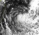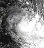 An extended series of low-pressure areas spawned what would become Tropical Storm Josta on March 5 near the Comoros in the northern Mozambique Channel. It initially drifted westward while slowly organizing, becoming a tropical storm on March 7.[1] On that day, the JTWC classified Josta as Tropical Cyclone 16S.[3] On March 8, Josta approached the coast of Mozambique within 90 km (55 mi) of Pemba before turning abruptly to the east-southeast. The convection fluctuated in intensity, eventually becoming better organized on March 9. That day, an eye feature formed in the center of the convection,[1] and the MFR estimated peak winds of 105 km/h (65 mph). By contrast, the JTWC upgraded Josta to the equivalent of a minimal hurricane with winds of 120 km/h (75 mph).[18] The eye feature dissipated soon after due to increased shear, causing Josta to weaken. On March 10, the storm re-intensified slightly, aided by the monsoon, as it passed 160 km (100 mi) south of Mayotte. It again weakened soon thereafter, with the convection spreading ahead of the circulation over Madagascar. On March 12, the circulation dissipated off the northwest coast of Madagascar, partially due to the influence of the stronger Kylie to the southeast.[1] Rains from the storm reached 270 mm (11 in) along the coast of Madagascar, despite the storm not making landfall.[19]