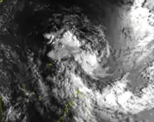On October 1, an area of convection developed about 500 km (310 mi) Seychelles at a low latitude. Moving southwestward, the system organized into Tropical Disturbance A1 on October 2, the first of the season. A small central dense overcast subsequently developed over the circulation. A ridge to the south steered the disturbance westward, bringing it just north of the Farquhar Group.[1] On October 5, the disturbance intensified into a tropical depression, reaching peak winds of 55 km/h (35 mph).[23] Subsequently, increased wind shear dissipated the convection as the rapidly weakening depression passed north of Madagascar. On October 7, the circulation dissipated. There were two other disturbances between October and late November.[1]
