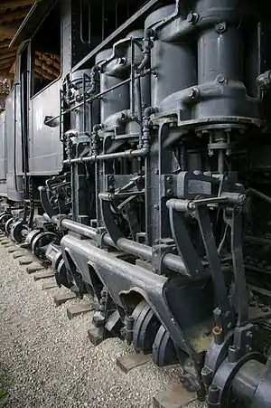 On some locomotives the valve gear is located outside the frames, e.g. Italian State Railways Class 640.