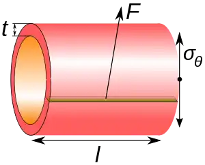 An alternative to hoop stress in describing circumferential stress is wall stress or wall tension (T), which usually is defined as the total circumferential force exerted along the entire radial thickness:[3]