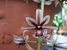 Cymbidium aloifolium, the aloe-leafed cymbidium, is a species of orchid found in Asia, especially China and southeast Asia from Burma to Sumatra. It can be found growing between rocks or on another plant.[1] The word cymbidium comes from the Greek kumbos meaning "hole, cavity" and the Latin specific name is just a translation of the English "aloe-leafed".[2]