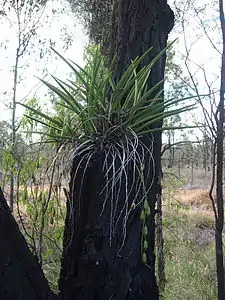The channelled boat-lip orchid grows in the forks or hollows of trees in woodlands and drier forests in the Kimberley region of Western Australia, the northern parts of the Northern Territory, (including Melville Island) and from Cape York Peninsula in Queensland south to the Hunter River in New South Wales.[2][5][9]