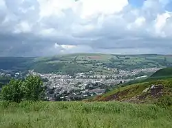 Cymmer (Welsh: Y Cymer) is a village and community in the Rhondda Valley, Wales. It is so named because of being located at the 'confluence' of the Rhondda Fawr and Rhondda Fach river valleys. Several collieries were opened here in the middle part of the nineteenth century. A coal mine disaster in 1856 resulted in 114 casualties, and the lack of payment of any compensation to the miners' families caused bitter feelings in the community.