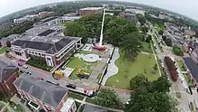 Following the demolition of the former Student Union Complex (Olivier, Corona & Guillory Halls) located along Hebrard Boulevard and Boucher Street, a new green space was completed in that area in early 2018, and named “Cypress Lake Plaza.” The Plaza includes an amphitheater with a podium and stage that affords speakers and presenters a scenic spot to address campus crowds. Further enhancements to the Plaza were completed in October 2019. These improvements include arbors over a portion of the Plaza, as well as a pier that extends into the lake.[2] Future plans include extending the lake on the Hebrard side.