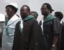 On 13 January the National Assembly elected Ntaryamira to become president in a vote, 78 to one.[17] Ntaryamira was scheduled to be inaugurated on 22 January, but the parliamentary opposition, led by UPRONA, filed a suit with the Constitutional Court to block the installment. They argued that Article 182 of the constitution, which stipulated that the document could not be modified in times of national crisis, rendered the National Assembly's amending of Article 85 void. FRODEBU parliamentarians argued that the change was necessary to fill the vacancy, since holding a national election to replace the former president would have been impossible. The Constitutional Court ruled in favor of the opposition in a decision split along ethnic lines. The Hutu justices subsequently resigned and the government dismissed the Tutsi justices. This led to several days of violence in Bujumbura, but on 3 February the government and opposition parties reached an agreement to install Ntaryamira as president with an UPRONA prime minister, as well as reinstate the Constitutional Court. Ntaryamira was sworn-in on 5 February. In his inaugural address, he declared that his top priorities would be to restore peace, promote human rights, and resettle thousands of Burundian refugees and internally displaced persons.[14] His government consisted of a broad coalition including Hutu and Tutsi members from FRODEBU and UPRONA. Anatole Kanyenkiko, an UPRONA politician, was made Prime Minister.[13] Kanyenkiko's selection did not satisfy many UPRONA leaders, and while Ntaryamira allowed several other top party figures into his government, he blocked the appointment of those whom he considered responsible for the violence in the capital.[18]