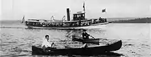 Starting in the summer of 1900, Anderson ran the vessel as a passenger ferry between Madison Park and Leschi Park.[21] In 1903, Anderson acquired Xanthus, another of James Coleman's yachts. He paired her with Cyrene to create a passenger ferry service that ran every half hour between Leschi Park, Madrona Park, and Madison Park.[22] The fare was 10 cents.[23] Business was good. Too good on occasion. In 1907 Cyrene was fined $393.50 for taking 30 more passengers than the law allowed.[24] In 1914 Cyrene ran from Leschi Park to various points on the west side of Mercer Island eleven times daily.[25]