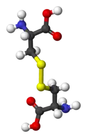 Cystine is a dimer consisting of two cysteine molecules and the formation of a disulfide bond. This amino acid is a rate limiting substrate used in the SLC7A11 cystine/glutamate transporter and is usually imported into the cell. Cysteine-158 is specifically used in the formation of the disulfide bridge for the protein structure of system Xc-.[10] There are neurotoxins, such as BMAA, that can prevent the intake of cystine, which can lead to decreased extracellular glutamate levels and an increase in oxidative stress.[11]