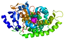 - Hasemann CA, Kurumbail RG, Boddupalli SS, Peterson JA, Deisenhofer J (January 1995). "Structure and function of cytochromes P450: a comparative analysis of three crystal structures". Structure. 3 (1): 41–62. doi:10.1016/s0969-2126(01)00134-4. PMID 7743131.