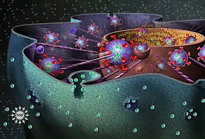 Transcytosis is a type of cytosis that allows particles to be shuttled from one membrane to another. An example of this would be when a receptor normally lies on the basal or lateral membrane of an epithelial cell, but needs to be trafficked to the apical side. This can only be done through transcytosis due to tight junctions, which prevent movement from one plasma membrane domain to another. This type of cytosis occurs commonly in epithelium, intestinal cells, and blood capillaries. Transcytosis can also be taken advantage of by pathogenic molecules and organisms. Several studies have shown that bacterium can easily enter intestinal lumen through transcytosis of goblet cells.[7] Other studies, however, are exploring the idea that transcytosis may play a role in allowing medications to cross the blood-brain barrier. Exploiting this fact may allow certain drug therapies to be better utilized by the brain.[8]