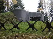 After the German occupation of Czechoslovakia border regions as a result of the Sudeten Crisis, the Germans used these objects to test and develop new weapons and tactics, plan, and practise the attacks eventually used against the Maginot Line[2] and Belgium's forts, resulting in astounding success. After the fall of Belgium, France and the Low Countries, the Germans began to dismantle the "Beneš Wall", blowing up the cupolas, or removing them and the embrasures, some of which were eventually installed in the Atlantic Wall.
