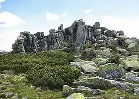 Czeskie Kamienie or Mužské kameny ("Bohemian/Czech Rocks" or "Man Rocks" in Polish and Czech respectively), 1,416 metres (4,646 ft) and Śląskie Kamienie or Dívčí kameny ("Silesian Rocks" or "Maiden Rocks"), 1,413 metres (4,636 ft) is a twin peak and a rock formation situated in the western part of Krkonoše on Polish and Czech border within the Karkonosze National Park on the Polish–Czech Friendship Trail. The rocks are up to 8 m high.[1]