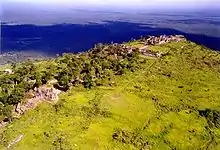 The Dângrêk Mountains were part of the ancient Khmer Empire, which spread northwards across them, culminating with the almost complete control of the Isan area in 1220 under Jayavarman VII.[9] Among the archaeological remains in the mountain area there are stone carvings on the Pha Mo I-Daeng cliff, ancient stone-cutting quarries, as well as the Sa Trao reservoir. There are also remains of sanctuaries that were built as homes to spirits called phi ton nam ('watershed spirits') in different spots along the border area of the Dângrêk mountain chain. However, the largest and most important archaeological site in these mountains is the Prasat Preah Vihear compound, a Shaivite temple of the Khmer imperial times dated from the reign of Suryavarman I[10]: 96 in a dramatic location on top of a high hill.[11]