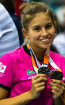 She competed at the 2019 World Championship in the SB14 100m breaststroke, winning the bronze medal.[2]She competes in swimming with her twin sister Beatriz Carneiro.[3][4]