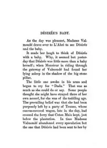 "Désirée's Baby" is an 1893 short story by the American writer Kate Chopin. It is about miscegenation in Creole Louisiana during the antebellum period.