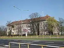 During the war[38] at least 11 students were killed by the Germans.[39] When most of Poznań was seized by the Red Army yet with the German troops still holding out in the Citadel, some teachers approached the nascent Polish administration about re-opening of the school;[40] few days later the Młyńska premises were almost entirely destroyed during the final phase of the battle. An attempt to seize a non-school building still standing on the former Luisenschule plot proved unsuccessful.[41] Following a brief period when the school operated jointly with the Potocka College[42] and once a formal decision to re-open the school had been adopted,[43] recruitment took place in the former Chamber of Commerce building.[44] In 1945-1948 Dąbrówka was hosted in premises of Państwowe Liceum Pedagogiczne,[45] Zamoyska College[46] and the former Colegium Marianum.[47] The school commenced the schooling year of 1948/49 at Plac Bernardyński, in the premises taken over from another college, shut down as hotbed of reactionary education.[48] At that time the heavily damaged building at Młyńska Street was refurbished and turned into a dormitory for non-resident girls of Poznań colleges.[49]